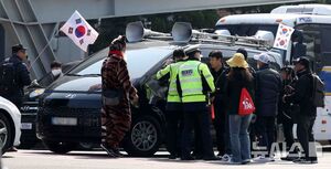 尹 파면에 격분한 지지자, 경찰 버스 유리 파손…현행범 체포