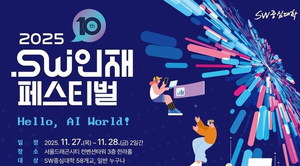 뉴시스 보도에 따르면, 과학기술정보통신부는 과기정통부가 주최하고 정보통신기획평가원(IITP)과 SW중심대학협의회(소중협)가 주관하는 '2025 소프트웨어인재페스티벌'이 오는 27~28일 서울 용산구 서울드래곤시티 한라홀에서 진행된다고 밝혔다.
